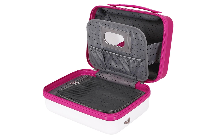 Neseser je izrađen od kvalitetnog ABS materijala koji je lagan, čvrst i otporan na udarce i ogrebotine. Dimenzije 29 x 21 x 15 cm pružaju dovoljno prostora za kozmetiku, pribor za higijenu, češalj, gumice, maramice i ostale sitnice potrebne na putovanju. Unutrašnjost sadrži dva odvojena odeljka, džep sa rajsferšlusom, džep sa elastičnim trakama i praktično ogledalo, što omogućava uredno raspoređene stvari i lak pristup svemu što je potrebno.