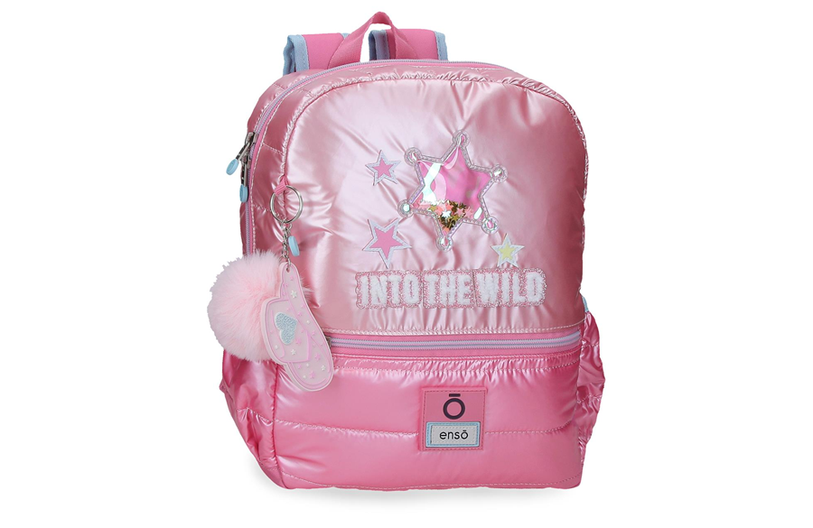 Široke, podesive naramenice lepo naležu na leđa i pružaju udobnost tokom nošenja. Ranac je lagan, mekan i prijatan za svakodnevnu upotrebu. Na zadnjoj strani nalazi se traka za postavljanje na trolley kolica, pa se po potrebi može koristiti i uz dodatni nosač sa točkićima. Sjajna pink boja, dekorativna zvezda, simpatični detalji i privezak sa pufnom daju rancu razigran i moderan izgled. Model se lako uklapa sa pernicama, torbama, koferima i ostalim artiklima iz ENSO INTO THE WILD kolekcije.