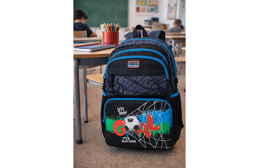 Oznake: crni ranac, dečiji ranac, fudbalski ranac, movom offside, movom ranac, plavi ranac, ranac A4 format, ranac sa bočnim džepovima, ranac sa dva odeljka, ranac sa organizerom, ranac za dečake, ranac za školu, ranac za više razrede, školski ranac, sportski ranac